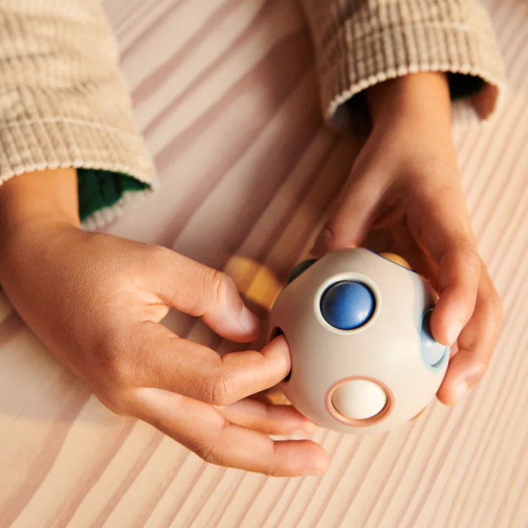 Fidget puslespilslegetøj med små farverige bolde, der kan rulles og flyttes, så de matcher med ringenes farve. Hjælper med at træne finmotorik og farvegenkendelse. Ideel til fokuseret og fordybende leg.