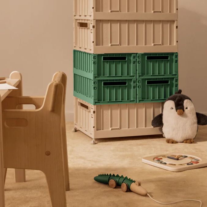 Tilføj ny funktionalitet til dine WESTON-opbevaringskasser med hjul. Konstrueret med en stålkerne sikrer stabilitet, mens 360°-rotationen gør kasserne lette at flytte, selv når de er fyldt med legetøj. Mix og match farverne på hjulene med din WESTON-kasse derhjemme.