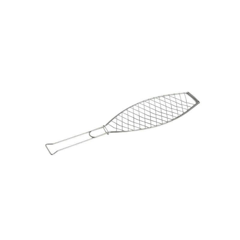 Outdoor Market BBQ Fish Grill fra HAY Outdoor Market by Jasper Morrison er en bærbar grill i rustfrit stål formet som en fisk. Den har lange håndtag for sikker brug og er perfekt til grillning af fisk og andre retter ved udendørs madlavning.