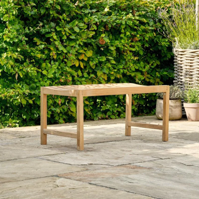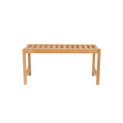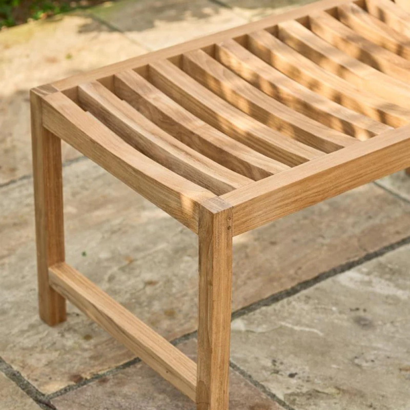 Komfortabelt bænk i L92cm med buet sæde i holdbart teaktræ.