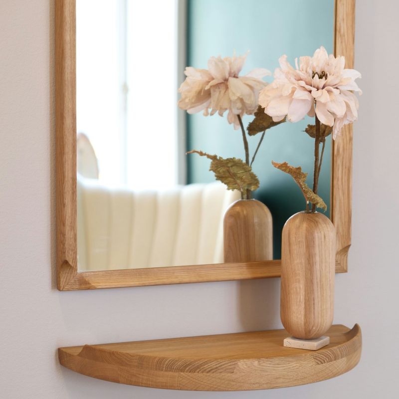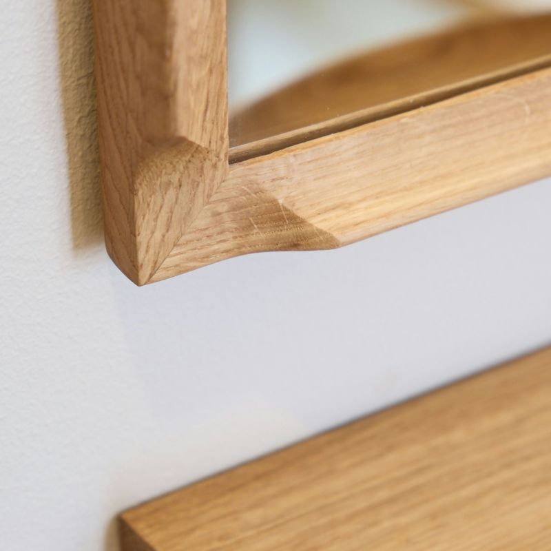 Arcus Mirror er nyeste tilføjelse til Arcus Shelf-serien en kollektion, der forener funktion og æstetik. Designet af Nanna Aakjær, bærer spejlet seriens karakteristiske afrundede egetræskanter, inspireret af hendes morfar, møbelsnedker Jørgen Aakjær Jørgensen.