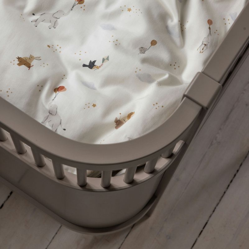 Den bløde bomuldskvalitet gør sengetøjet behageligt mod huden. Stoffet er økologisk certificeret og kan vaskes ved 60 ℃ – ideelt til hverdagsbrug og til at holde hygiejnen i top. Den lækre kvalitet tåler mange vaske og kan gå i arv til kommende søskende. Babysengetøjet er vendbart og har motiverne fra World of Sebra på den ene side, mens den anden side er ensfarvet lys creme. Dyne- og pudebetrækket har en solid YKK-lynlås, der er skjult, så den ikke generer søvnen. Den medfølgende stofpose kan bruges til opbevaring af sutter, skiftetøj eller småting til pusletasken. Babysengetøjet er designet i Danmark.