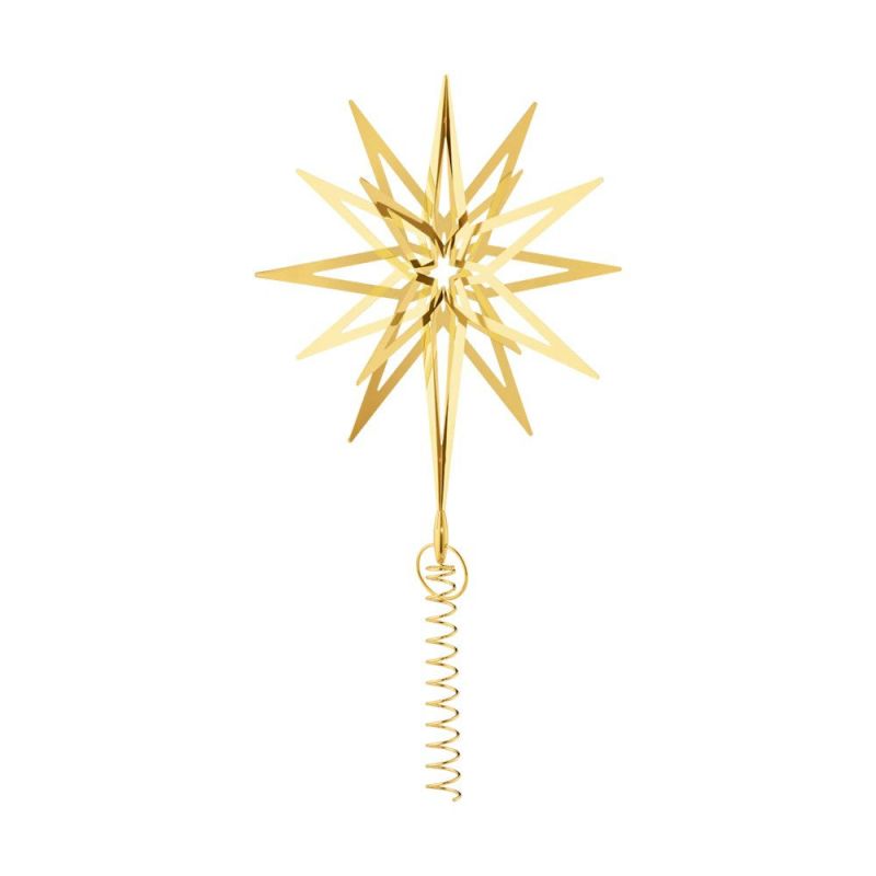 Lyra topstjernen er en del af vores faste julekollektion og den perfekte stjerne på toppen af juletræet år efter år. Topstjernen er fremstillet i rustfrit stål, belagt med 18 karat guld. Den har både en spiral, som gør det nemt at sætte stjernen på træet, og en ring, så den kan hænges op i et bånd.