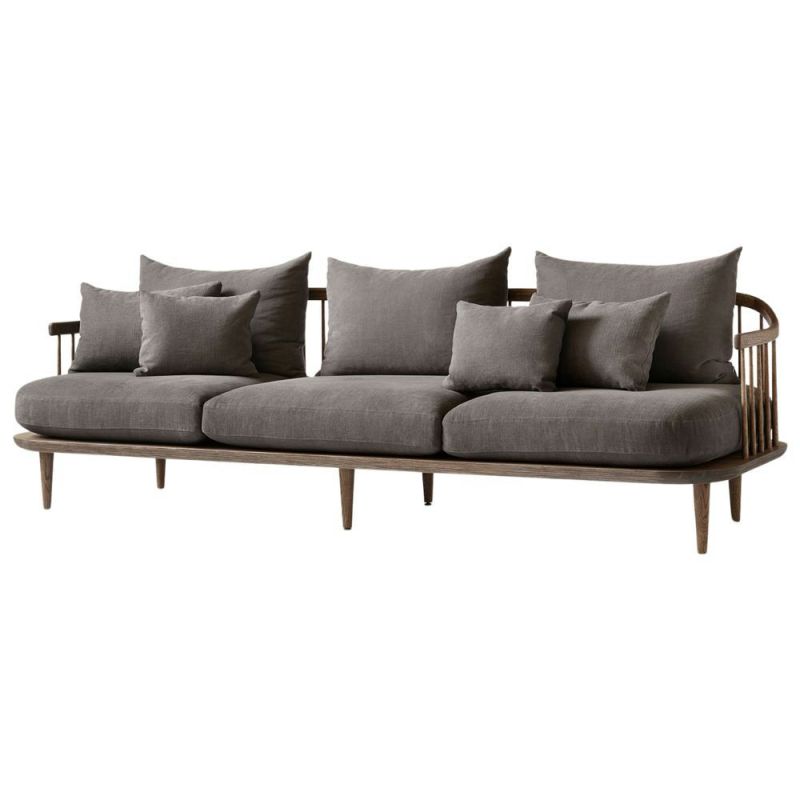 Fly-serien af Space Copenhagen. Fly-serien forener skulpturelt design med høj komfort og trækker på klassisk nordisk æstetik og håndværkstraditioner tydeligt i det lamelopbyggede træryglæn, de organiske former og det solide snedkerarbejde. Serien er skabt med fokus på afslapning og frihed i siddestillingen. I modsætning til mange traditionelle skandinaviske sofaer og lænestole, dikterer Fly ikke en bestemt kropsholdning. Sædet er designet til optimal komfort med løse ryghynder, der let kan omarrangeres efter brugerens behov.
