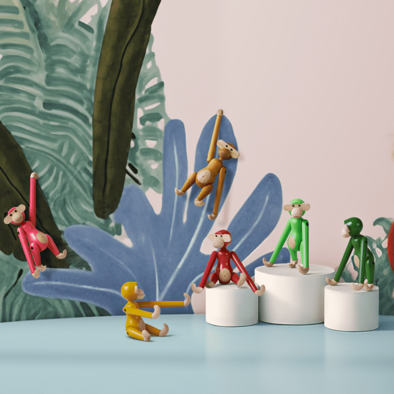 Kay Bojesens ikoniske Abe har fået nyt liv i en farverig miniversion i vintagegrøn en nuance hentet fra et originalt tapet, Kay Bojesen designede til børneværelset i slutningen af 1940erne. Den friske grønne farve tilfører retro-charme og passer smukt til det FSC®-certificerede bøgetræ, der ses på hænder, fødder, ansigt og mave. Kombinationen af malet og ubehandlet træ fremhæver abens karakteristiske linjer og det tidløse design. Miniaben måler ca. 10 cm og fås også i vintageblå, vintagerød og vintagegul alle autentiske farver fra arkiverne. De fire aber komplimenterer hinanden og spreder glæde og personlighed, uanset hvor de placeres.