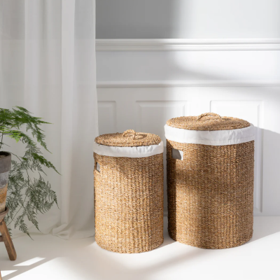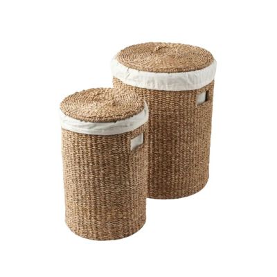 Smuk vasketøjskurv i 2-pak med praktiske håndtag, låg og indvendig foer i 100% økologisk bomuld. Hold styr på vasketøjet og løft samtidig indretningen med et elegant, skandinavisk touch. Kurvene kan også bruges til opbevaring.