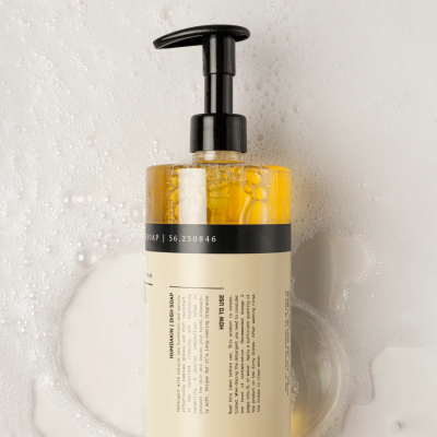 • Ingredienser: mindre end 15% anioniske tensider, mindre end 5% amphoteriske tensider, konserveringsmidler (2-fenoxyethanol) og parfume. Benzensulfonsyre, C10-13-alkylderivater, natriumsalt