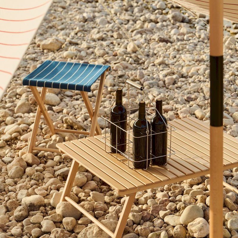 Outdoor Market Bottle Carrier fra HAY Outdoor Market by Jasper Morrison er designet til udendørs brug med fokus på holdbarhed og funktionalitet. Fremstillet i rustfrit stål og kan rumme op til seks flasker perfekt til vin, vand eller andre drikkevarer på stranden, i haven eller til udendørs sammenkomster.
