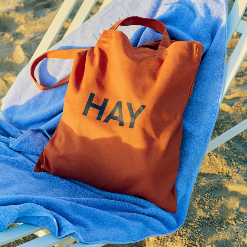 HAY Tote Bag er en funktionel og iøjnefaldende indkøbstaske med robuste håndtag og HAY-logo i kontrastfarve