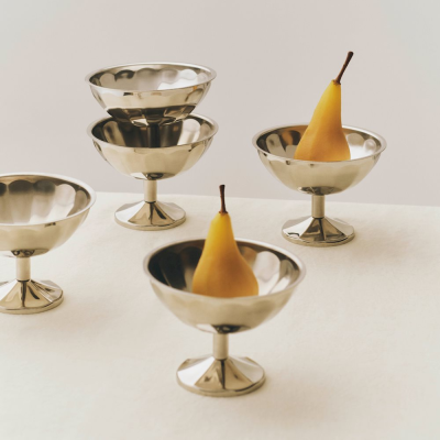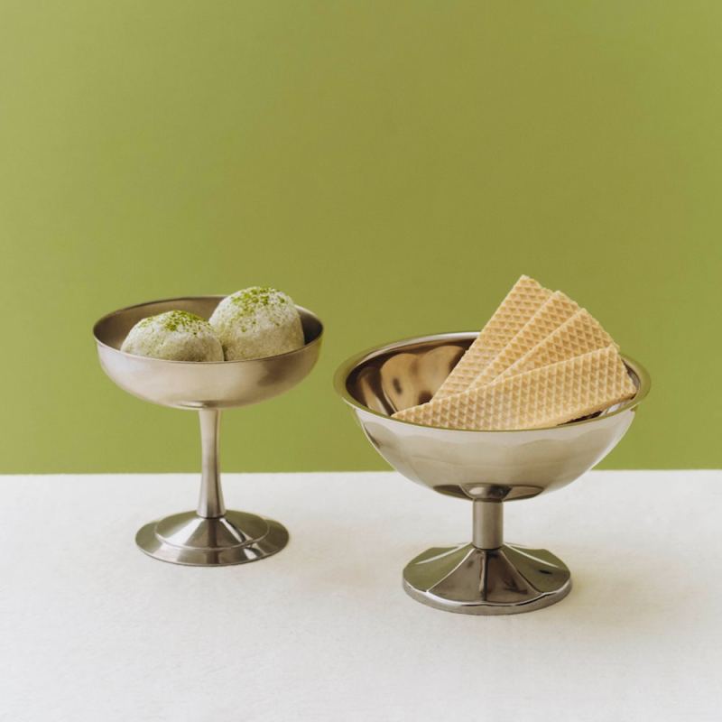 HAYs Italian Dessert Cup er fremstillet i poleret rustfrit stål med et facetslebet design. Den korte stilk og brede, bølgede skål giver et elegant udtryk, ideelt til servering af is, frugt og andre kolde desserter. Fremstillet i Italien.