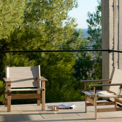 Canvas Chair af Børge Mogensen fra Fredericia Furniture er et tidløst designikon, der forener funktion, komfort og kompromisløs materialekvalitet. Canvas Chair er oprindeligt tegnet i 1970 som en af Børge Mogensens sidste kreationer for Fredericia Furniture. Stolen blev relanceret i 2020 og videreudviklet til udendørs brug tro mod designerens filosofi om holdbare materialer og perfekte proportioner.