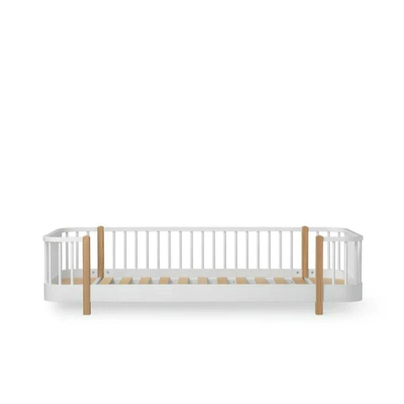 Wood Original gulvseng er designet til det lille barn, der er vokset ud af tremmesengens trygge favntag og nu søger mere selvstændighed og frihed. Den lave liggehøjde gør det nemt for børn fra omkring toårsalderen at kravle ind og ud af sengen på egen hånd. Med de generøse mål på 90 x 200 cm er der plads til både leg og læring i dagtimerne og til, at mor eller far kan læse godnathistorie side om side ved sengetid.
